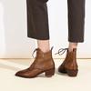 Retro Ankle-Boots mit spitzer Zehenpartie für Damen, klobige Absätze, Schnürung, hochwertige Lederschuhe, Herbst Frühling, französische Kurzstiefel