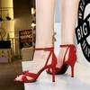 Damenmode Sandalen Sommerkomfort Ein-Riemen Dünne High Heels Stiletto Wildleder Hohl Offene Zehen Überkreuzte Riemen Partyschuhe