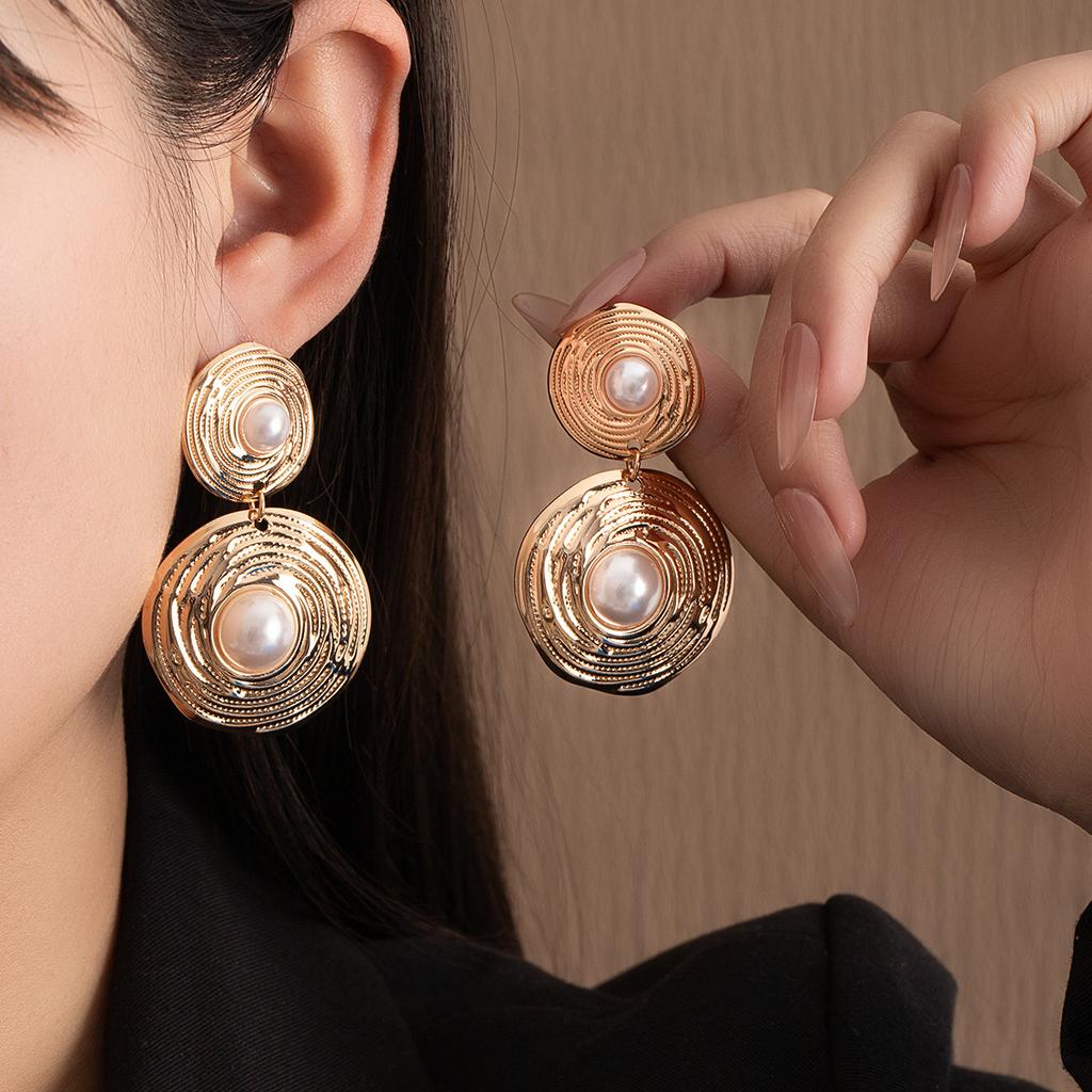 Vintage Texture Pearl Earrings - Exaggerated Long Circular Atmospheric Ear Studs - Unique Design Sense High-end Ear Accessories