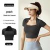 Juyitang Yoga-Top mit kurzen Ärmeln und hoher Elastizität – kein BH erforderlich
