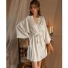 Nachthemd mit Strumpfhaltern aus Seidensatin und Spitze mit Schlitz - Sexy Dessous