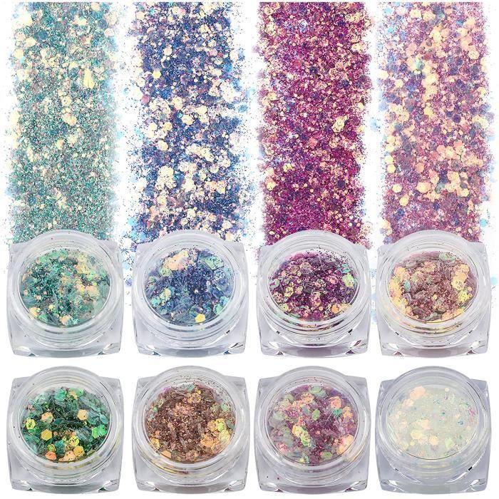 Paillettes pour ongles - 8 couleurs irisées - effet sirène holographique - 3d - multicolore
