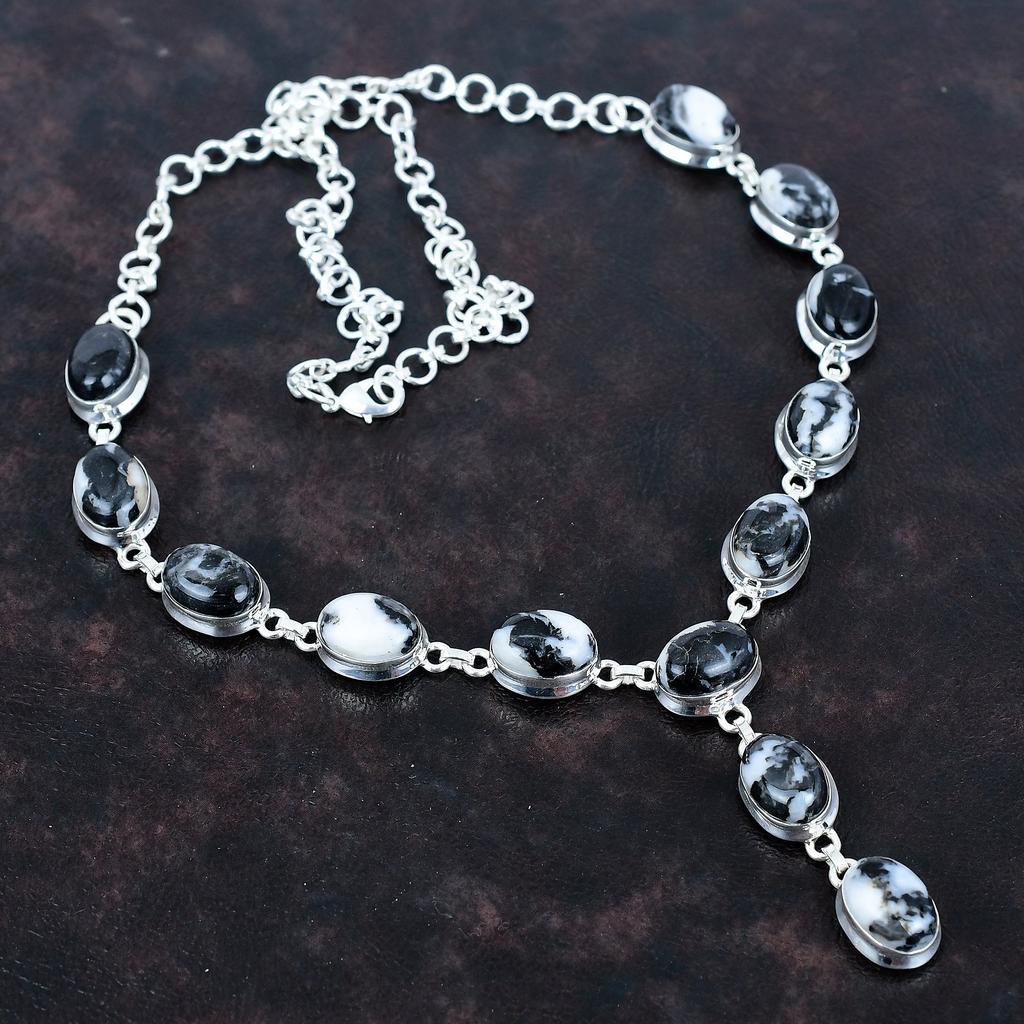 White buffalo turquoise necklace natural gemstone jewelry 925 sterling silver necklace adjustable chain necklace handmade necklace for gifts