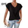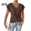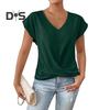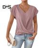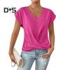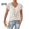 Damen-Oberteile, V-Ausschnitt, kurze Ärmel, T-Shirt mit Falten-Design, einfarbig, lockere Passform, kreuzgefaltete Oberteile, für den Alltag