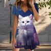 Sommermode Damen V-Ausschnitt Kurzarm Katzenmuster bedrucktes Kleid Sex Kurzer Rock Kleider