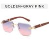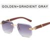 Arrow Wood Grain Legs Frameless Trimmed Sunglasses Women, Irregular Square Sunglasses Retro Sunscreen Glasses