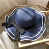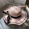Hut mit großer Krempe, Wellenkante, schwarzem Rand und Schleife, einfarbiger Fischerhut, Strohhut, Damen Mädchen Strandhut, Sonnenschutzmütze für die Küste, Reise-, Urlaubs-Sonnenhut