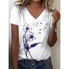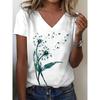 Lebhaftes Löwenzahn 3D-Druck V-Ausschnitt T-Shirt - Klassische Passform Kurzarm Lässiger Stil Damen T-Shirts