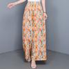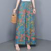 Sommerhose mit weitem Bein für Damen, hohe Taille, Vintage-Kleidung, Übergröße, lockere Freizeithose mit elastischem Bund