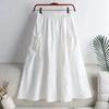 Solid Color High Waisted Long Skirt Women Spring Summer Drawstring Pocket A-Line Skirts Woman All-Match Midi Skirt