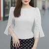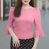 Damen Freizeit Rundhals Einfarbig 3/4 Ärmel Bluse