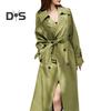 Damen Zweireihiger Langer Trenchcoat Winddichter Revers Schmaler Mantel mit Gürtel Windbreaker Jacke für Frühling Herbst