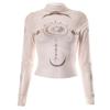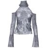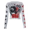 Y2K Sexy Spitze Mesh Durchsichtig T-Shirts Goth Grafikdruck Langarm Strick Patchwork Oberteile Vintage Damen Sommer Streetwear