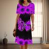 Damenmode Anmutige Blumen- und Schmetterlingsdruck Sommer Frühling Kurzarm O-Ausschnitt Freizeitkleider