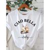Ciao Bella Damen-T-Shirt mit Rundhalsausschnitt – lässiges Kurzarm-Top mit Buchstabendruck aus Polyestermischung für Frühling und Sommer, italienische Zitrone