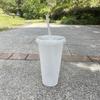Strohbecher, Trinkhalmbecher mit Deckel, Plastikbecher, matt, Kaffeeflasche, Tasse, Lebensmittelqualität, PP-Kunststoff mit Strohhalm