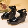 Europäische und amerikanische Mode Keilabsatz Fischmaul Sandalen Sommer 2025 neue Damenschuhe schwarz offen Zehen hohe Absätze