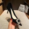 Damen High Heels Frühling und Herbst 2024 dünner Absatz Strass spitze Design Sinn Nische Französisch flacher Ausschnitt professionelle Arbeitsschuhe