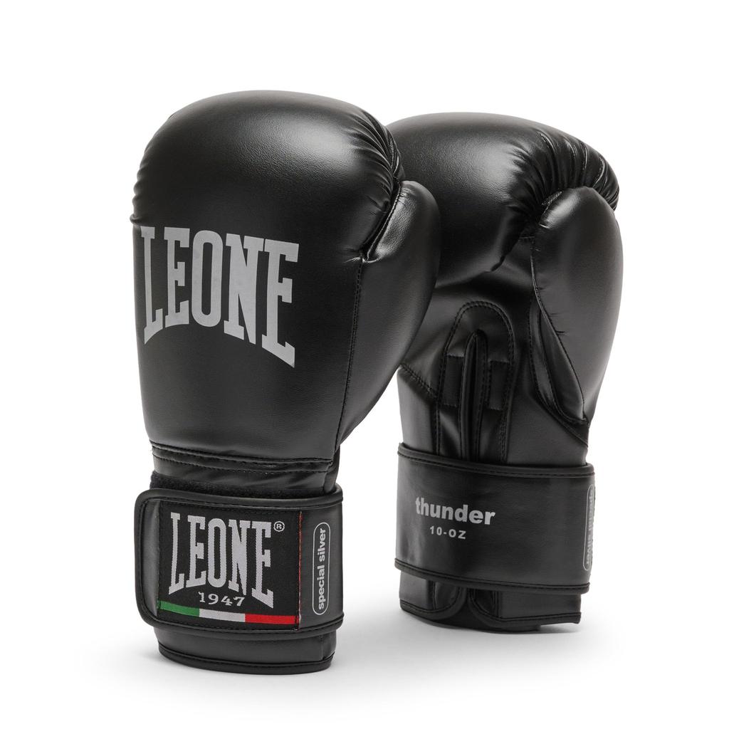 LEONE 1947 Boxhandschuhe Unisex Kunstleder Außen PU-Polster Klettverschluss Schwarz GN383 [THUNDER] (8 Unzen) [Originalprodukt]