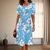 Damenmode Anmutig Schönes Blumenmuster Sommer Frühling Kurzarm O-Ausschnitt Freizeitkleider