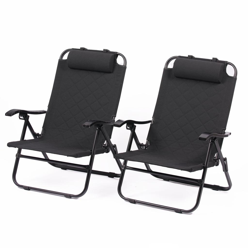 RcrCamp Niedriglehner Set 2 Stück mit Aufbewahrungstasche Schwarz Niedriglehner 4 Stufen Steppung Flammhemmend Aluminium Liege Entspannend Hohe Rückenlehne