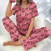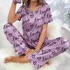 Ladies Pyjamas Dark Pink Letter Printed Short Sleeved T-shirt and Pants Sleepwear With2Pieces Casual Home Wear