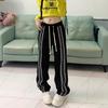 Schwarz-weiß gestreifte Hose für Damen im Frühling und Herbst Drapierte gerade Sporthose Locker Weitbeinige Freizeithose