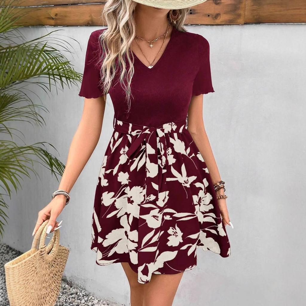 2025 Sommer Damen Strick Patchwork Blume Bedrucktes Bodycon Mini Kleid Mode Böhmische Kleider Weiblich Elegant Slim Partykleid
