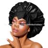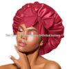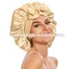 Elastische Schlaf- und Duschhaube aus Satin mit breiter Krempe für Damen – einfarbig, Größe L