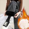 Helle Farbe Plus Samt Verdickte Straight Jeans für Damen im Winter Neue Retro Hohe Taille Locker Fleischbedeckend und Weitbeinige Hosen