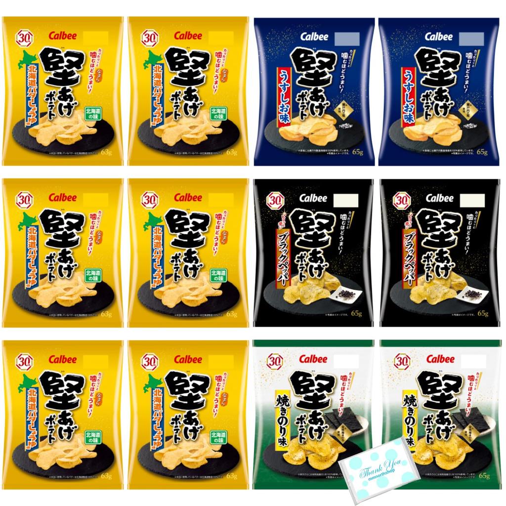 Calbee 4 Sorten sortiert Hokkaido Butter Soja Schwarz gegrillt insgesamt 12 Beutel Originalbeutel mit je 2 Beuteln [Kataage Kartoffel] [Nur Hokkaido] Soße,