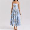 Mode Blumendruck Maxi Kleid Damen Bodycon Ärmellos Schnürkleider 2025 Frühling Sommer Sexy Robe Lady Lässig Street Sexy
