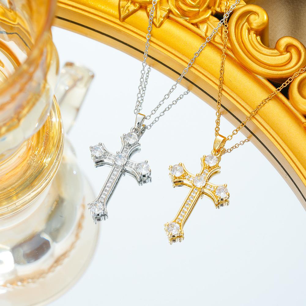 Punk Kreuz Halskette mit einzigartigem und modischem Weißzirkon Nischen-Design Schlüsselbeinkette