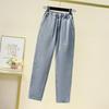 DIMANAF 2025 Neue Sommer Basic Elastische Jeanshosen Damen Locker Lässige Denim Basic Hosen Große Blaue Hosen