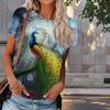 Damen Sommer T-Shirt Pfauendruck Retro Mode Kurzarm T-Shirts Casual Printed Tops