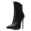 Damen kurze Stiefel mit hohen Absätzen, sexy, europäischer und amerikanischer Stil, spitz zulaufend, dünner Absatz, große, einfarbige kurze Stiefel