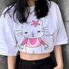 T-Shirts im japanischen Harajuku-Stil mit lustigem Kätzchen-Aufdruck für Mädchen, weiß, Übergröße, Baumwolle, Rundhalsausschnitt, kurzärmelig, Grunge-T-Shirt für Damen