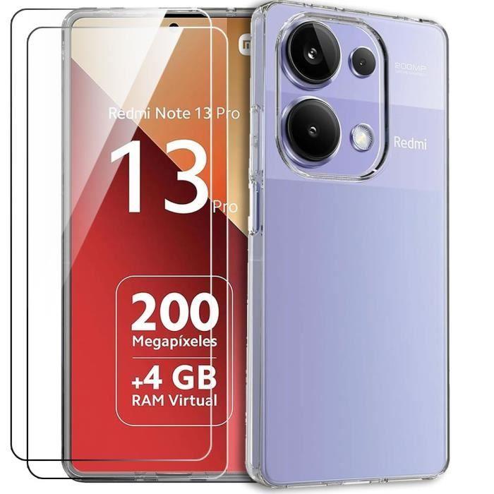 Hülle und 2 gehärtete Gläser für Xiaomi Redmi Note 13 Pro 4G (nicht für 5G) - Verstärkter Stoßschutz Silikon