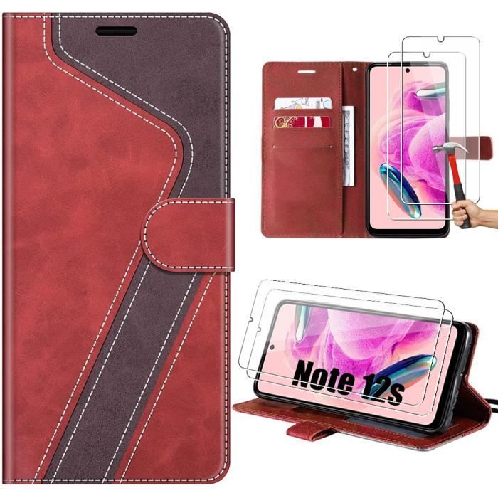 Coque - Xiaomi - Redmi Note 12S - Rouge - Protection en Cuir PU - 2 Verres Trempés