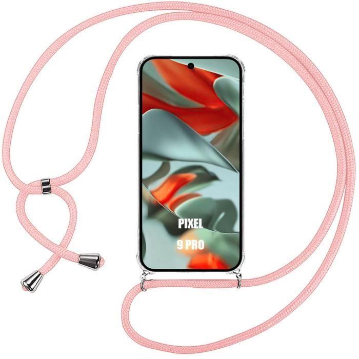 Hülle mit Kordel für Google Pixel 9 Pro, Stoßfest, Verstärkte Ecken, Flexibel mit Rosa Kordel