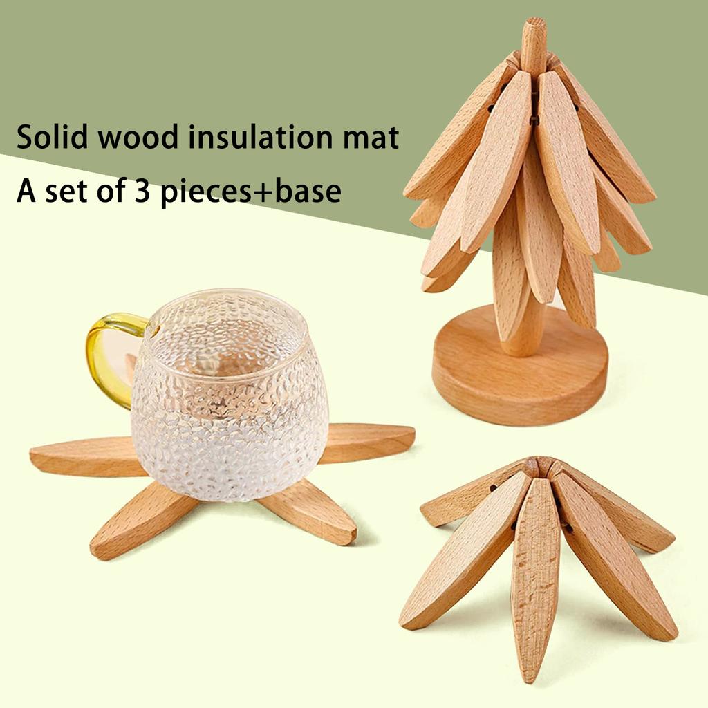 4-teiliges/Set Holz Hitzebeständige Matte Esstisch Dekoration Isolieruntersetzer Basis Set Holzhandwerk Küchentisch Dekor