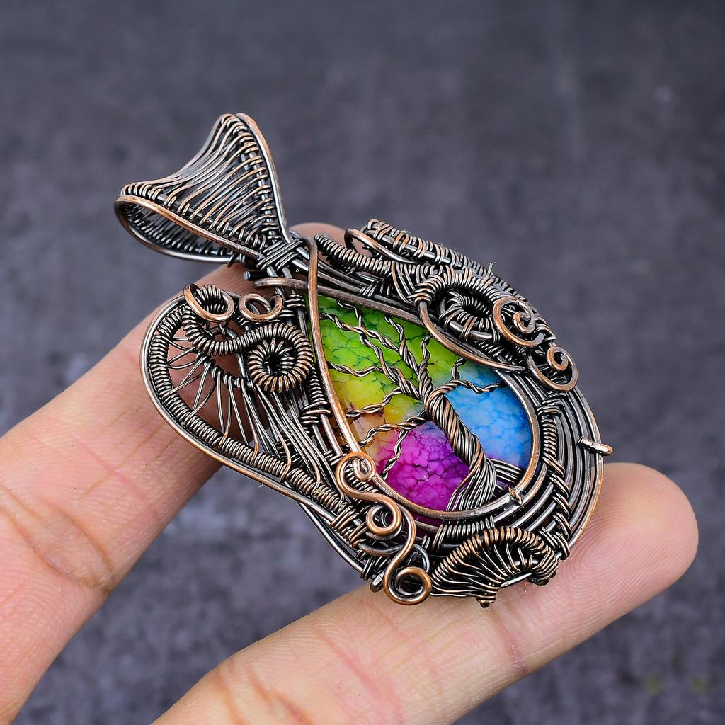 Rainbow Solar Quartz Handmade Copper Wire Wrap Tree Of Life Pendant 2.64" B5M87