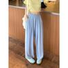 Blaue Einfache Lässige Weitbeinige Hosen für Damen Neu Hohe Taille Hängend Kleine Sommer Dünne Kühle Hosen