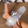 Transparente Zehentrenner mit eckiger Spitze für Damen 2025 Bonbonfarbene Jelly-Slipper Lässige Damen-Pantoletten mit offener Zehenpartie Flache Damen-Sandalen PVC Strandschuhe