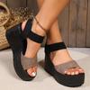 Damen-Sandalen mit elastischem Band und klobiger Plateausohle, modische schwarze Sandalen mit Keilabsatz für Damen, Sommer-Sandalen mit dicker Sohle, rutschfeste Strandschuhe
