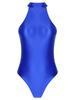 Damen Ärmelloser Bodysuit mit Stehkragen und Reißverschluss auf der Rückseite, glänzender Leotard, Bademode, dehnbares Outfit für Tanzauftritte