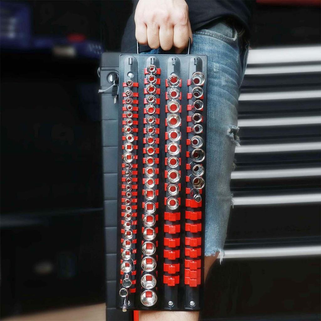 Socket Organizer Clips Rail 1/4 inch 3/8 1/2,Portable,Retention Tray Drive PP Tools Storage for