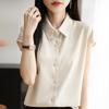 Damen Seiden-Satin Kurzarm-Cardigan-Top mit POLO-Kragen – Vielseitig und Professionell