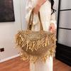 Damen Stilvolle Strick-Schultertasche mit Quaste Ausgehöhlte Flechttasche Verschleißfest Handgewebte Strandtasche Shopper Totes