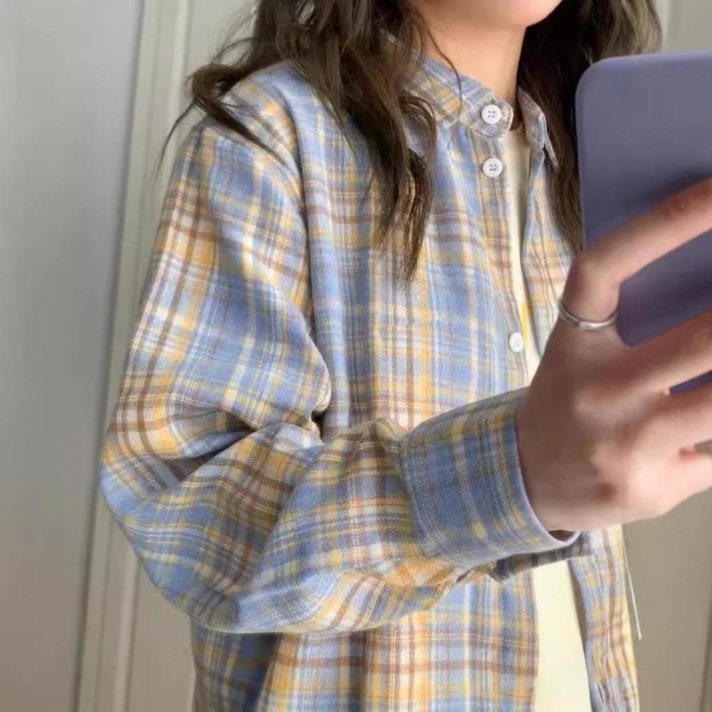 Retro Leichter Luxus Karomantel: Gelber & Blauer Langarm-Damenmantel für Frühling, Sommer und Herbst.